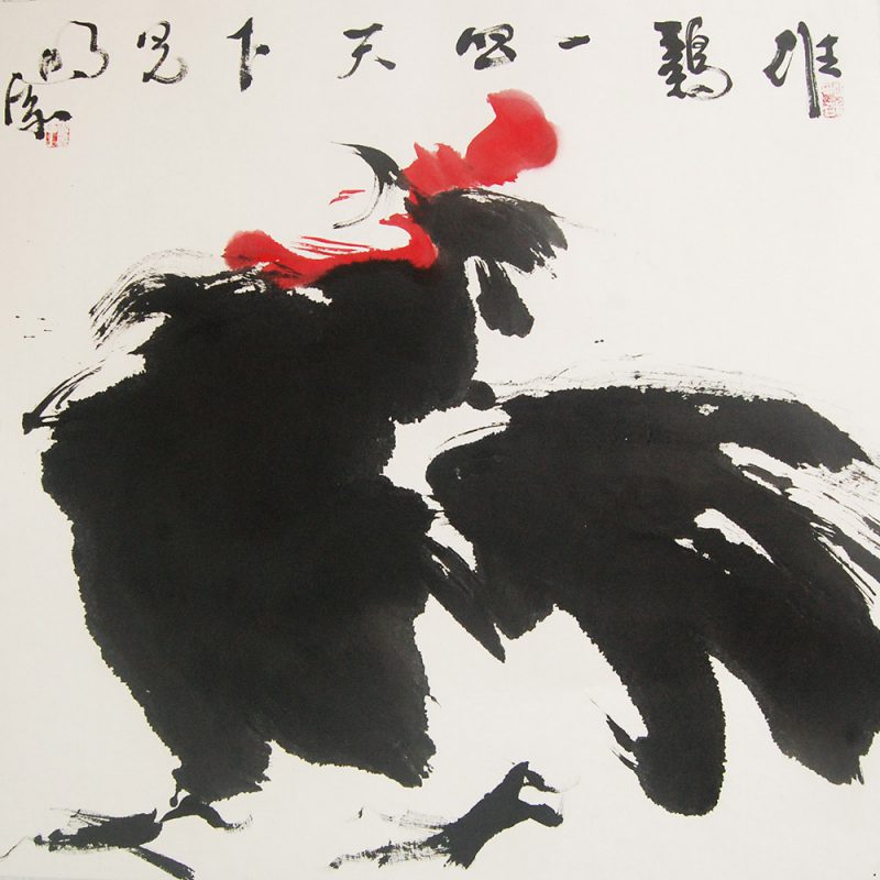 Painting roosters in Chinese calligraphy able to showcase the Rooster totem from realistic to romantic impressionistic style in a comprehensive way.